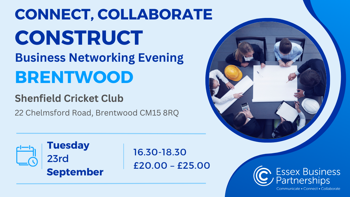 Address: Queen Victoria - Coppice Row, Theydon Bois, Epping, CM16 7ES At Essex Business Partnerships, we are creating a community of construction professionals, working in the Build Environment, who want to meet others with a view to learning about industry activity and making new professional connections. The group will meet monthly on the second Wednesday […]